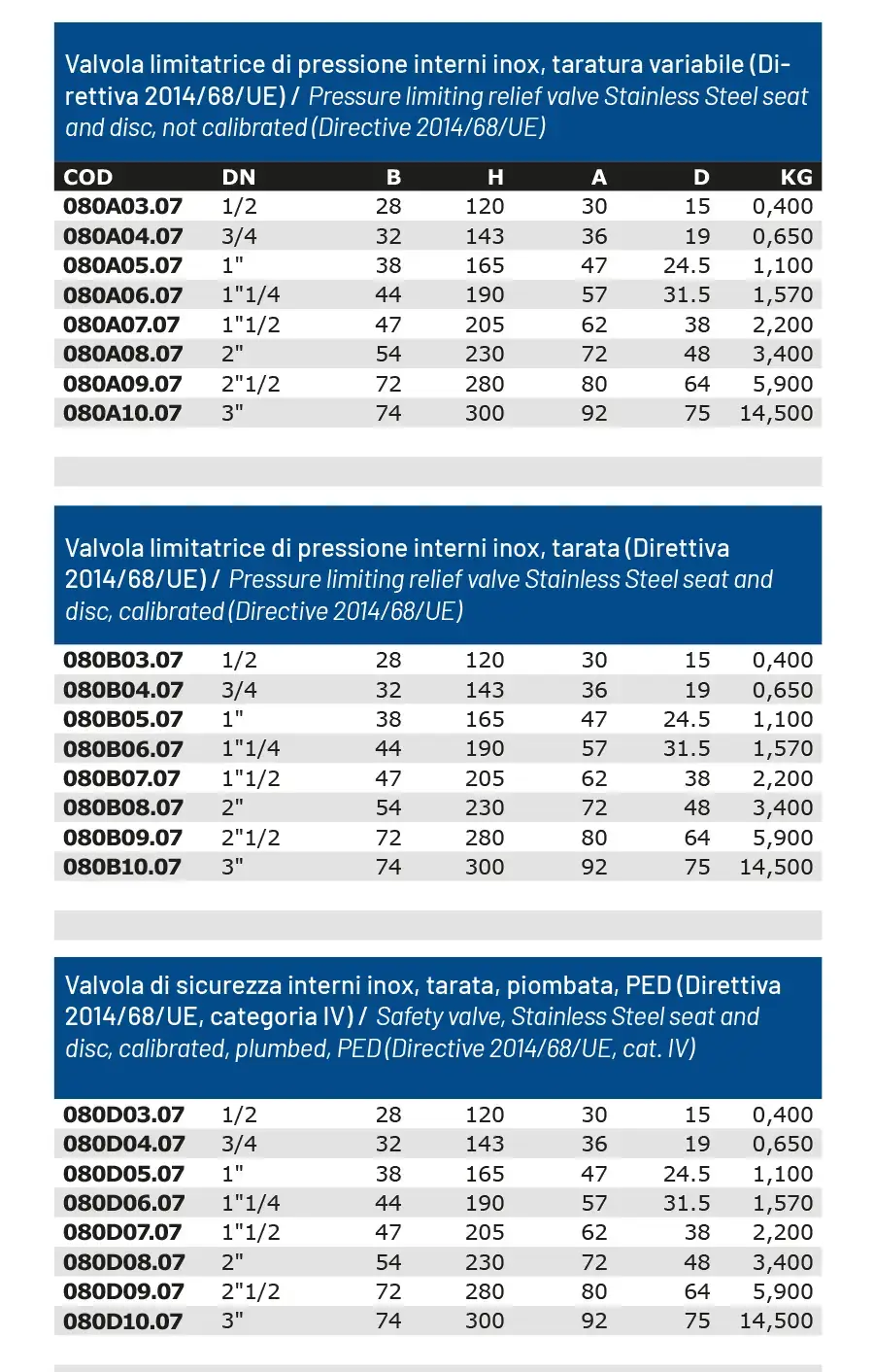 Valvole limitatrici di pressione sicurezza interni inox.