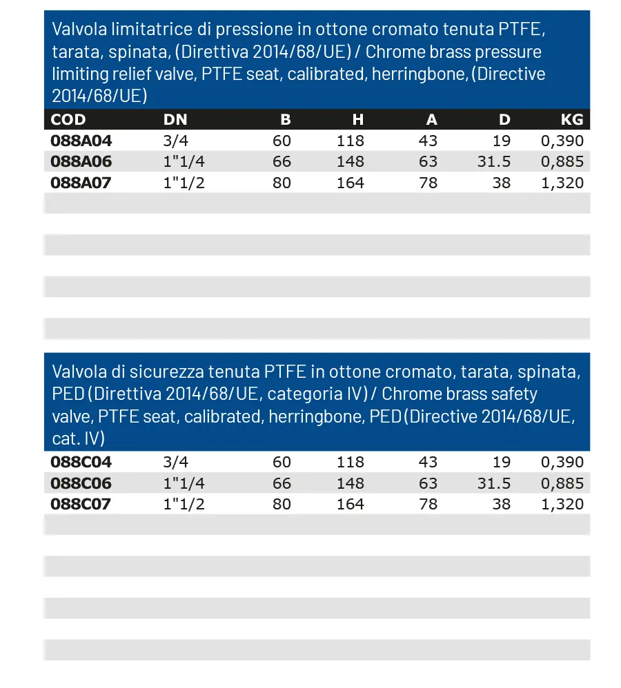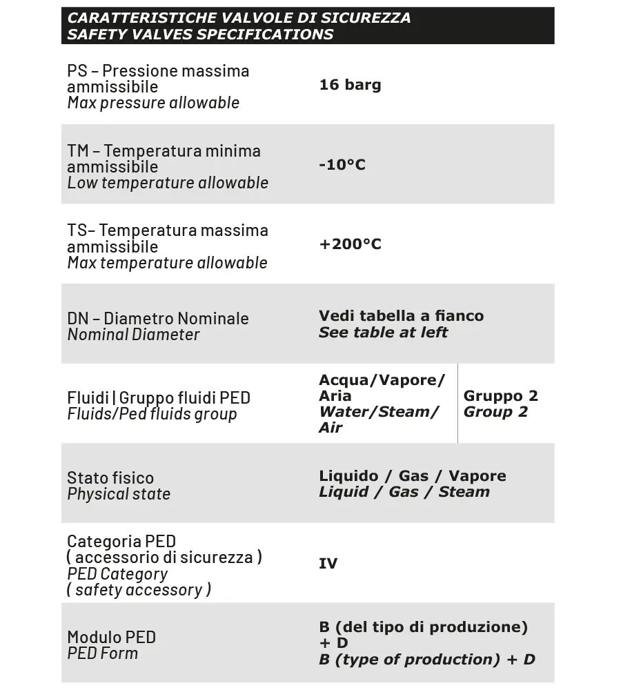 Valvole per basse pressioni adatte per impianti di grandi cucine in servizio su recipienti a chiusura ermetica.