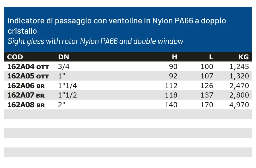 Indicatore di passaggio con ventoline a doppio cristallo. SU RICHIESTA: ventolino Inox e vetro borosilicato.