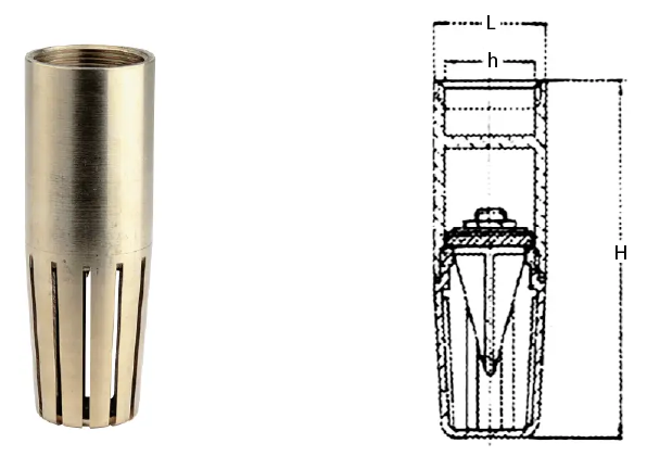 Valvola di fondo tubolare in ottone sede gomma.