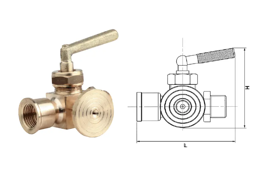 Brass male gauge holder plug cocks with gland and control flange allowing test operations, heavy type.