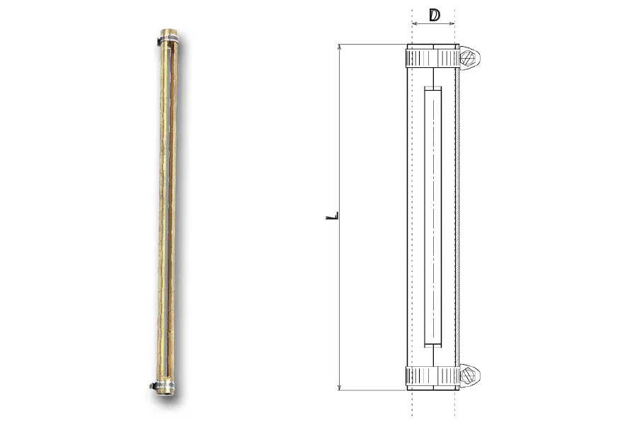Brass protectors for metal sheathed level indicators to protect the glass completely.